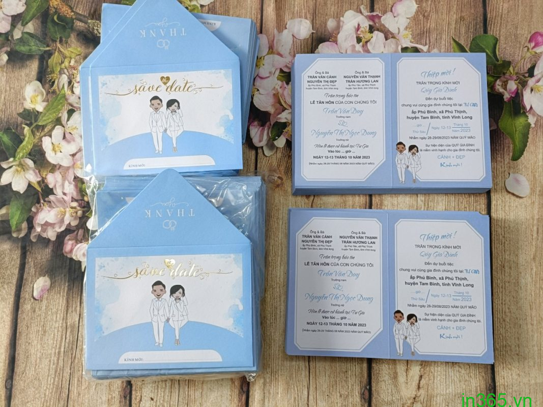 Dâu rể có mẫu đã in rồi mà chỗ in cũ không in số lượng ít, phát sinh có thể gửi mẫu qua zalo Thiệp Cưới Thủ Đức để kiểm tra mẫu có không và báo giá in