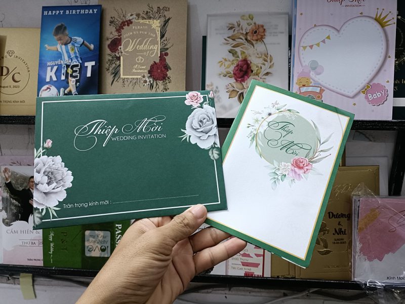 Quý khách/ Dâu rể đang thiếu thiệp để mời khách, phát sinh ngoài dự tính hoặc đang cần in thiệp cưới số lượng ít từ 20-150 thiệp. Thiệp Cưới Thủ Đức nhận in lấy ngay trong ngày cho Dâu Rể tại Tp. HCM