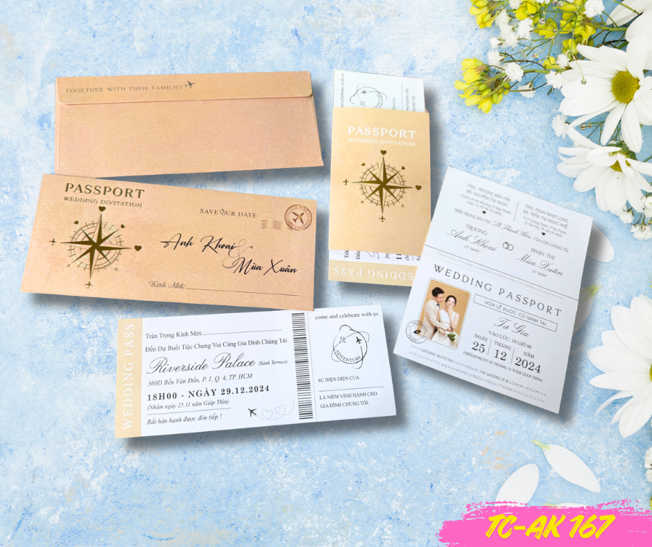 - Ruột 1 tờ vé máy bay + tờ passport có in hình dâu rể thực tế