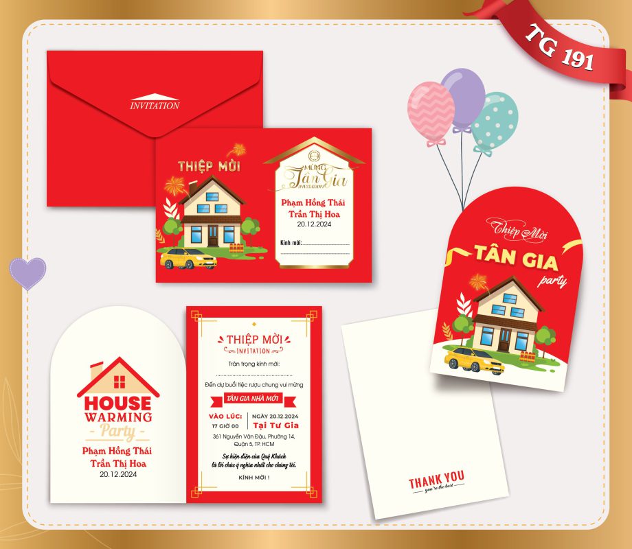 Thiệp tân gia Đỏ kiểu ngang in offset mã TG191